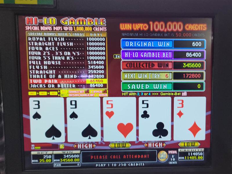 3→9→5→5の流れから余り迷わず強欲LOWを押した結果、TWO PAIR完成の最高の流れで345600枚獲得! これはBTHに残れそうです。
