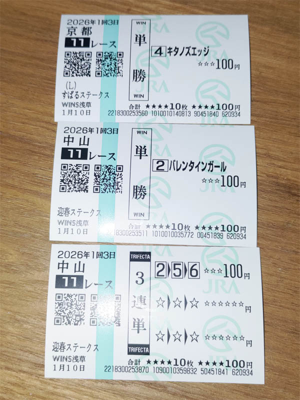 ウインズ浅草に立ち寄り、京阪杯の当たり馬券(260円)を払い戻しつつ本日のレースの馬券を購入。 2-5-6三連単は当たれば20,000倍くらいの宝くじ馬券です。