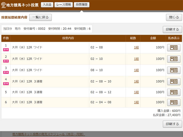 水曜日の仕事から帰宅後、地方競馬の12Rに間に合ったので購入。