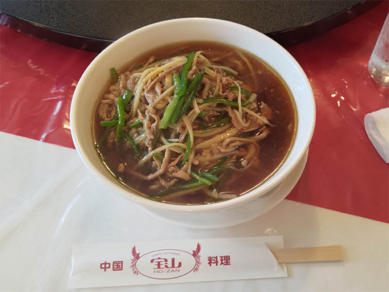 ふじみ野到着後宝山へ。 冷やし中華が終わっていたので牛肉入りスープそば(大盛)を注文。