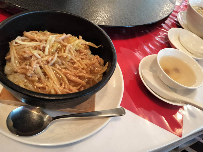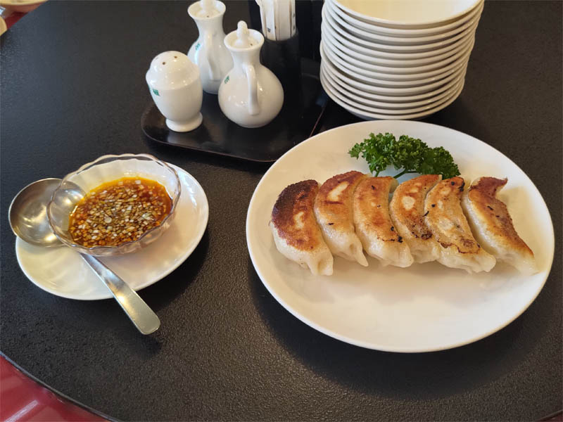 後の写真はいつものシェア餃子とsevenさんが注文した豚肉あんかけ炒飯。