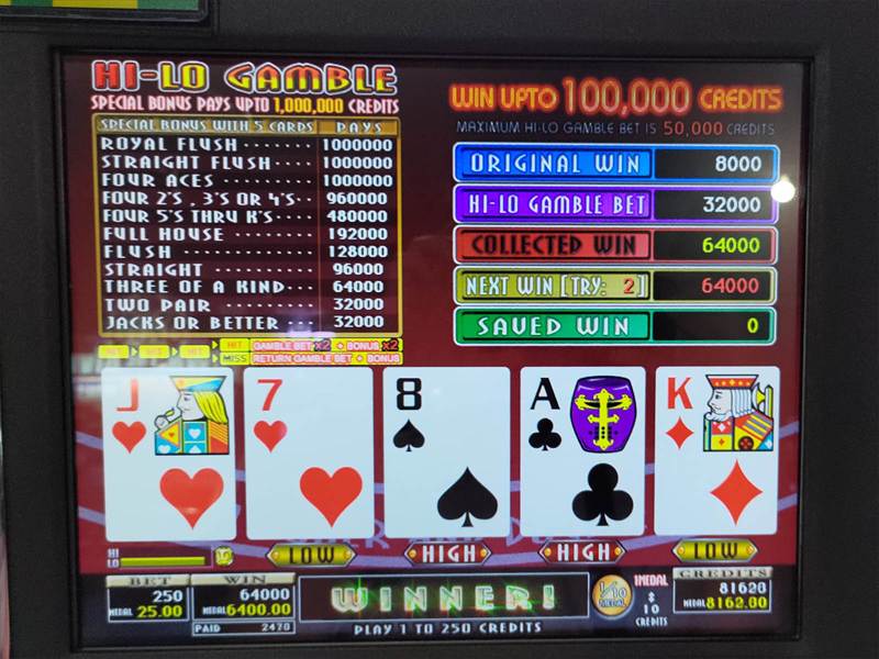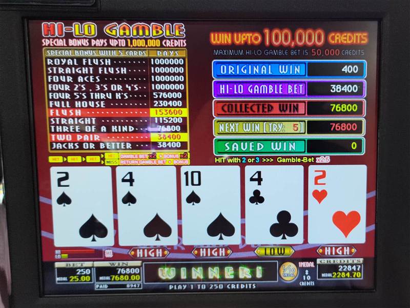 最初の102400枚の振り切りを皮切りにハイローギャンブルで6回振り切りましたが、攻めれば引分け、手堅く行くと裏目に出る「噛み合わない展開」