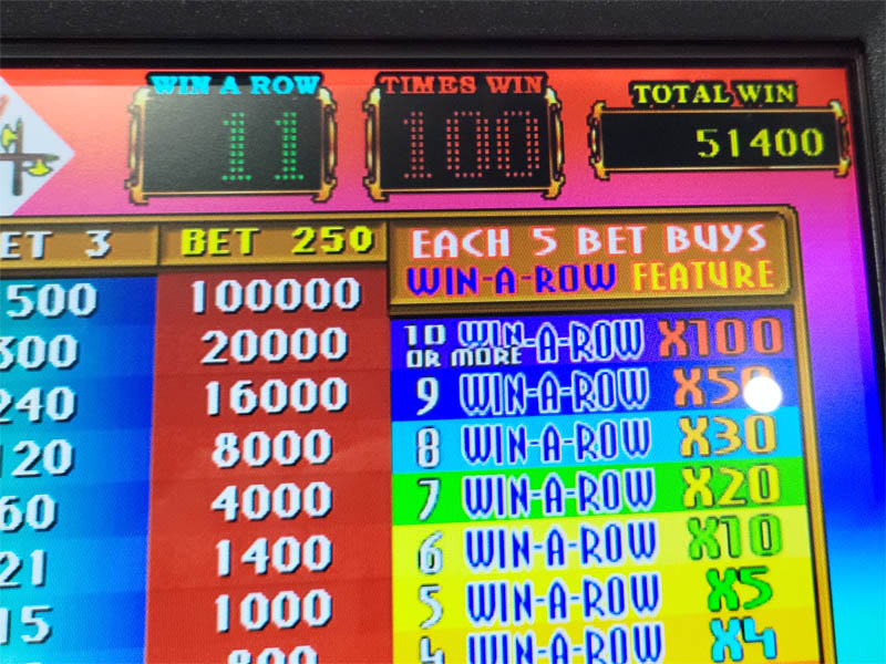 1ラインリピートゲーム搭載の癖強機種ですが、50BETで300000枚+αのhitが狙えるので根強い人気があります。