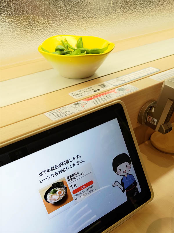 ラーメンを注文したら30秒くらいで完成の通知が来て早さに震撼しましたが、間違えて枝豆が出て来てさらに震撼しましたw