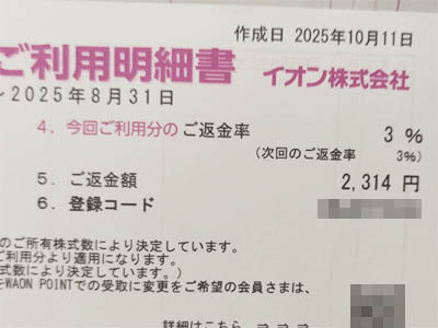 今日は暇だったのでイオンオーナーズカードの3%還元分の返金受取手続きしてきました。