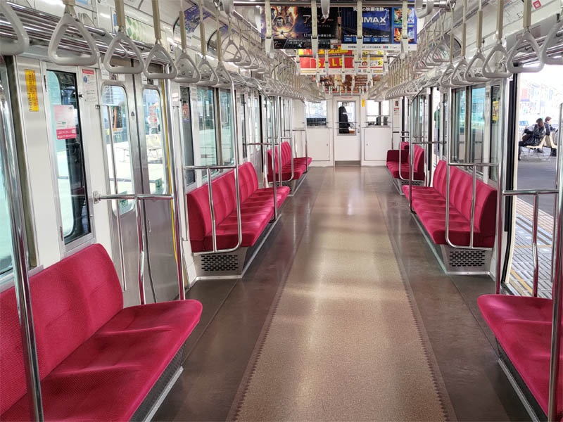 5500形は座席幅が47.5cmで他の電車より1.5cm広くて快適な「当たり車両」です。