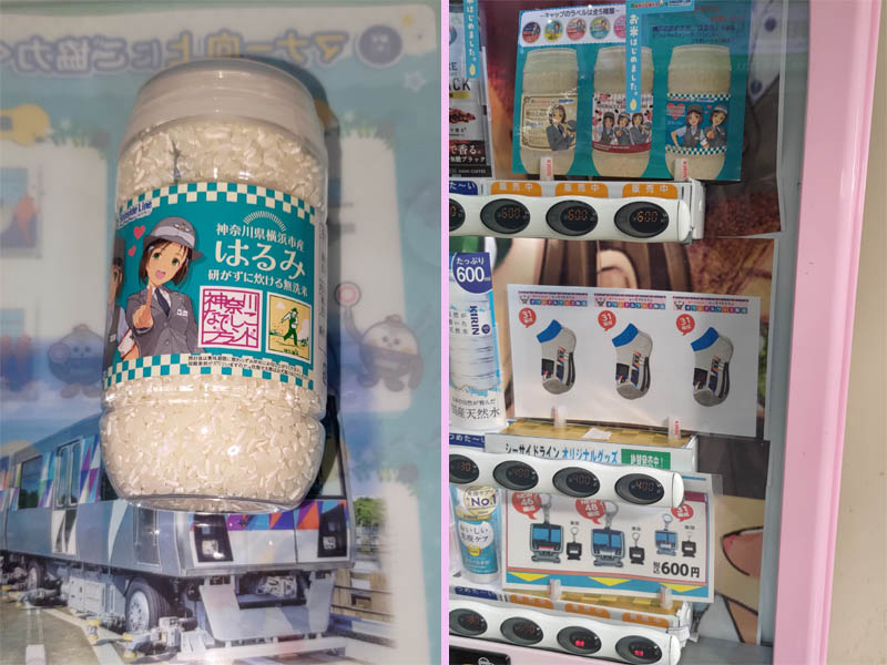 ファンブックmini以外のグッズは販売されていなかったのですが、シーサイドライン新杉田駅の飲料自販機で米が売られていたので購入。