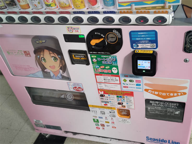 以前来たときはキーホルダーなどのグッズも飲み物と一緒にキンキンに冷やして販売されていましたが、自販機の取り出し口が分かれてグッズは常温で販売されるようになっていました。