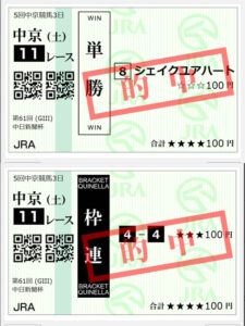 東京新聞杯(G3)で古川吉洋騎手のシェイクユアハートの単勝と久々のゾロ目枠連が的中。