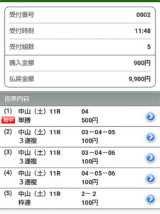 中山11Rホープフルステークスですが、ワールドプレミア産駒の活躍を期待して買ったロブチェンの単勝が当たりました。