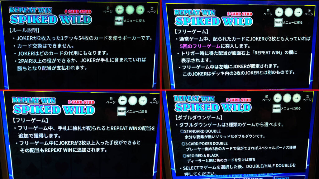 この台の新要素としては、フリーゲーム中にJOKER2枚の役が完成するとリピートウインに加算されること。