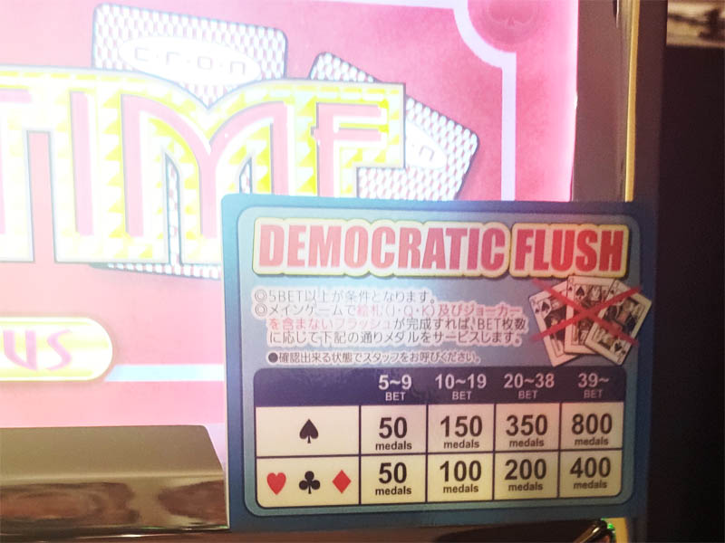 ポーカーでFACE図柄なしのフラッシュを引くとメダルがもらえるイベントを開催していました。