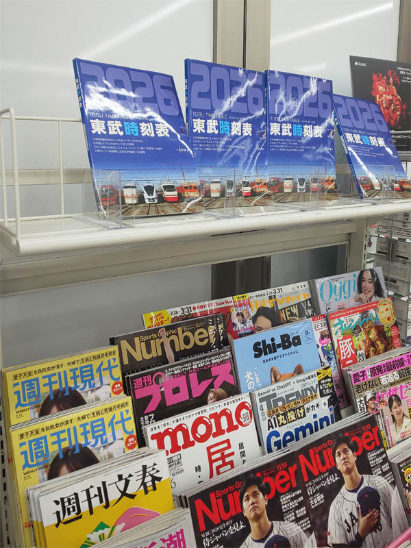 東武鉄道の時刻表は駅構内のファミマ(一部駅を除く)で売っているとリリースされていたのですが、私が行ったファミマは括弧書きに該当していて売っていませんでした。
