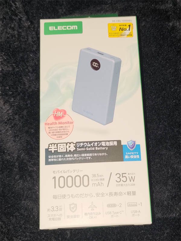 そして、久々に衝動買いをしたのがELECOMの半固体モバイルバッテリー「DE-C86-10000」です。